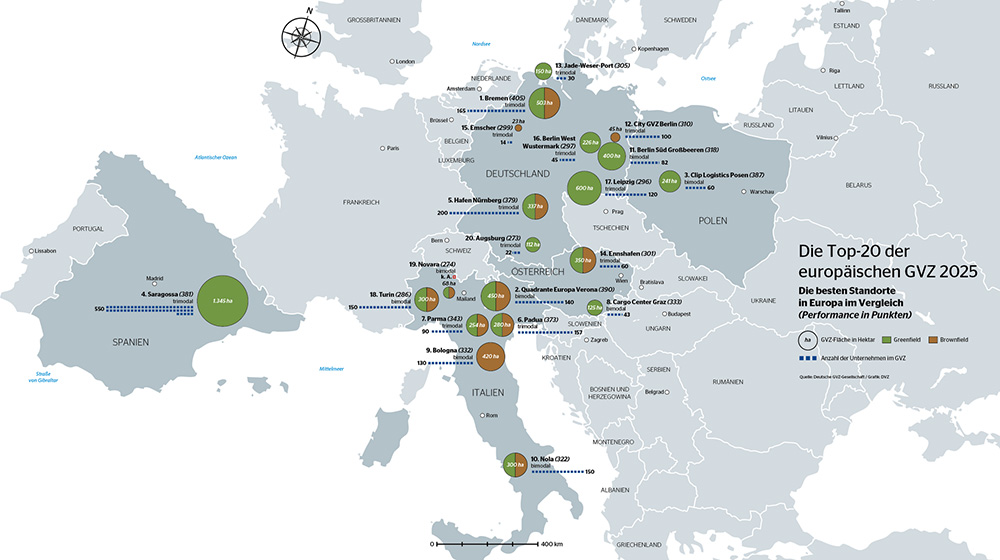 The Hanseatic city has once again made it to the top of the European ranking of freight villages (GVZ) and is the European champion. But the other locations are hot on Bremen's heels. Italy in particular is trumpeting its "team spirit", which is unique in Europe.